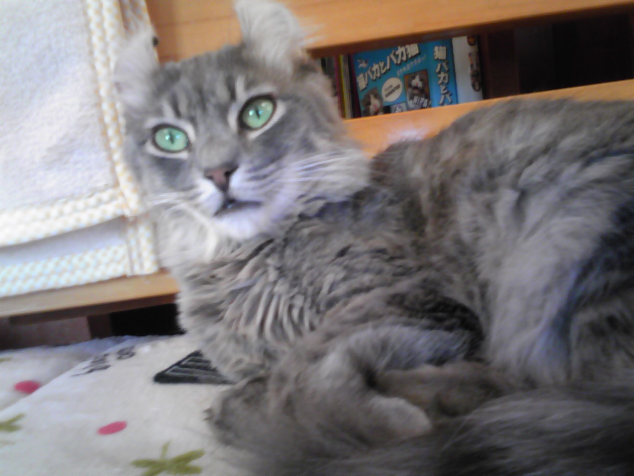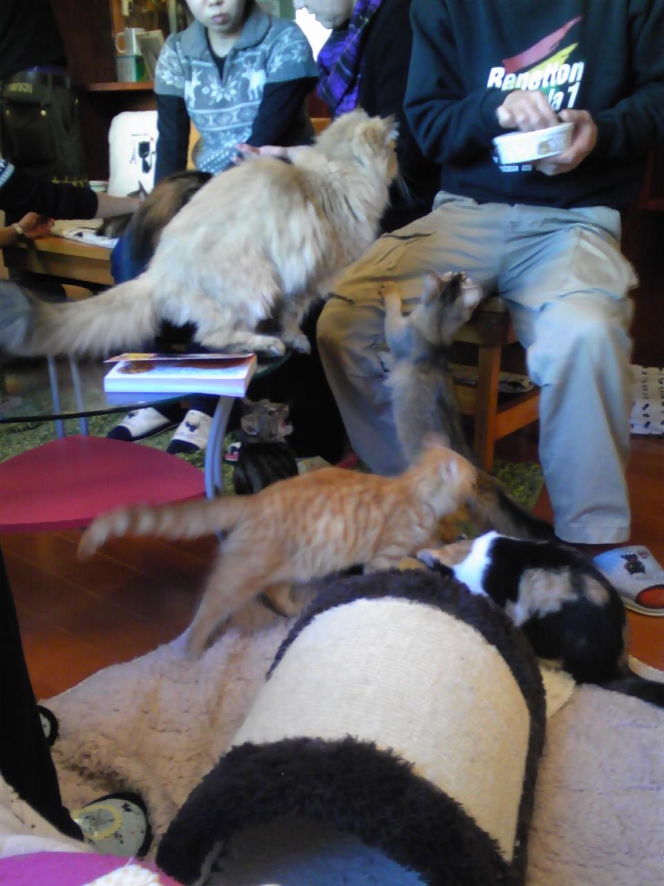 おっと失礼。ま、そのときおにーさんのおやつを独占してた写真でおにーさんの膝あたりにいるにゃんこがお店の人に怒られてたんですよ